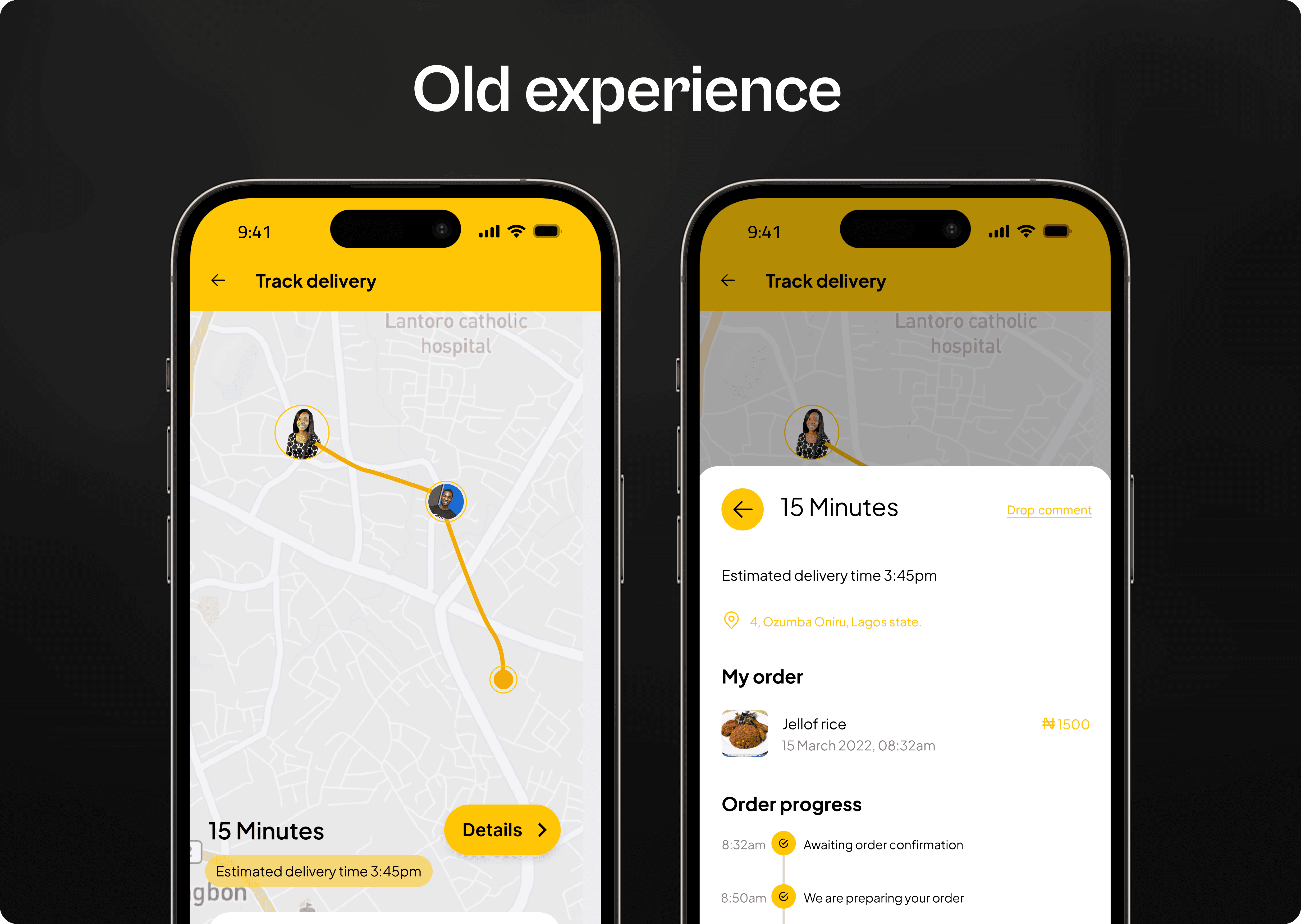 In early 2024, I started a full review of the 9jaDelivery app. My goal was to improve the user experience and prepare the product for the next version of our platform. The tracking screen was one of the most important parts of this work. Through user research, testing, and expert reviews, I found several areas that needed improvement.